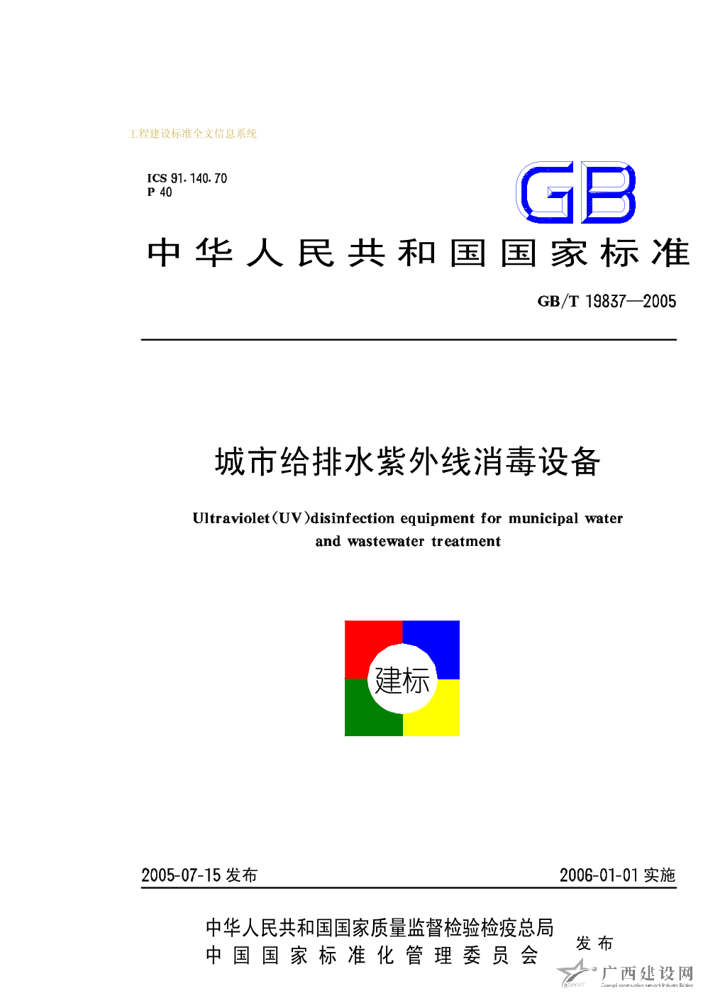 城市給排水紫外線消毒設(shè)備 GB/T19837-2005