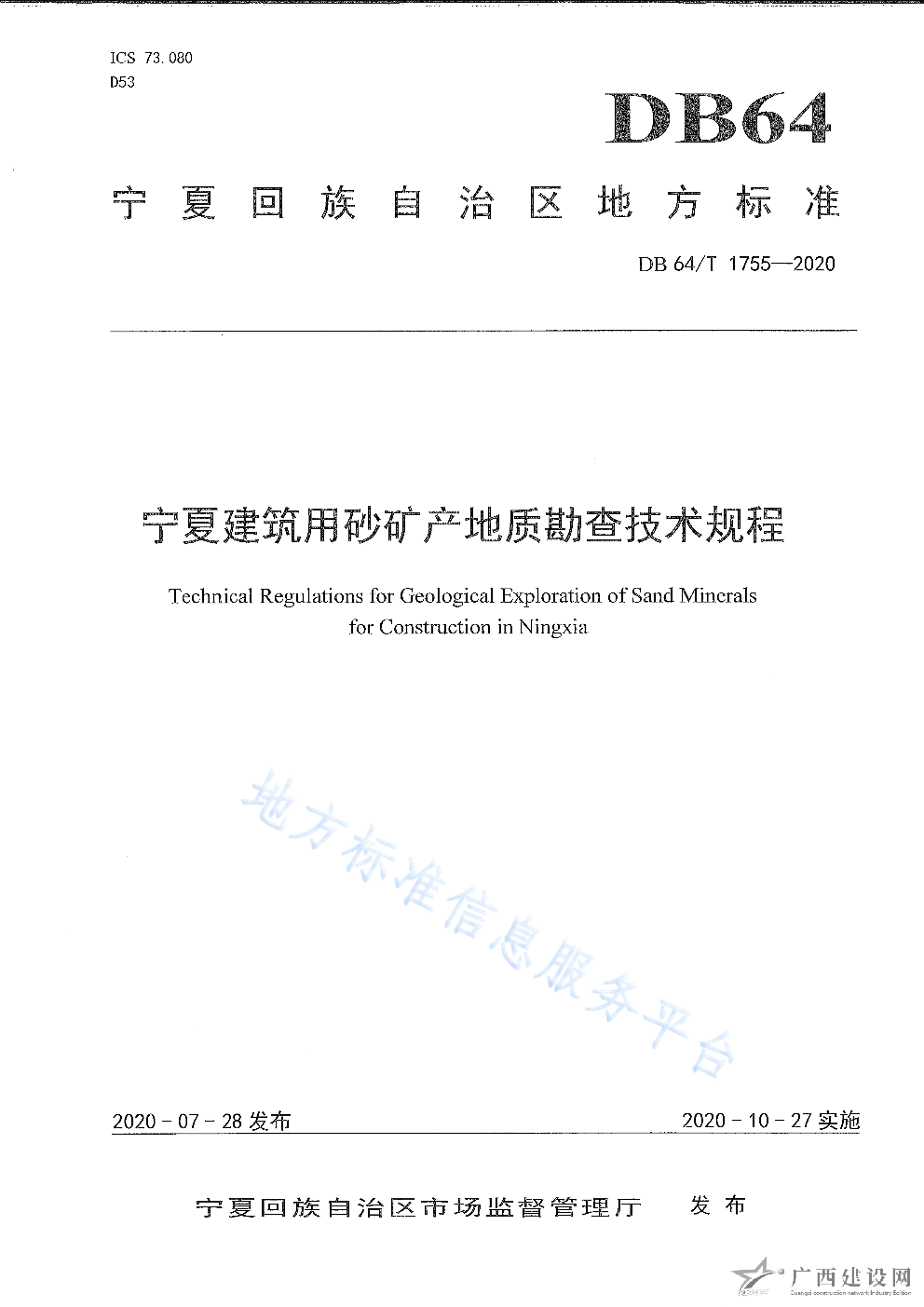 DB64 1755-2020寧夏建筑用砂礦產(chǎn)地質(zhì)勘查技術(shù)規(guī)程