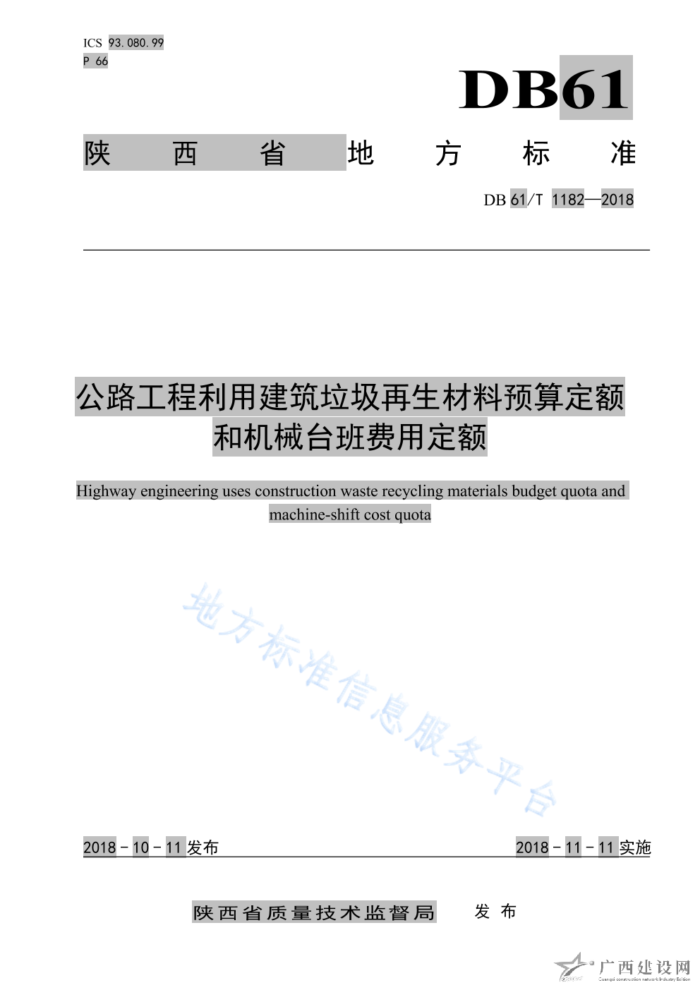 DB61 T1175-2018建筑垃圾再生材料公路應用設計規范