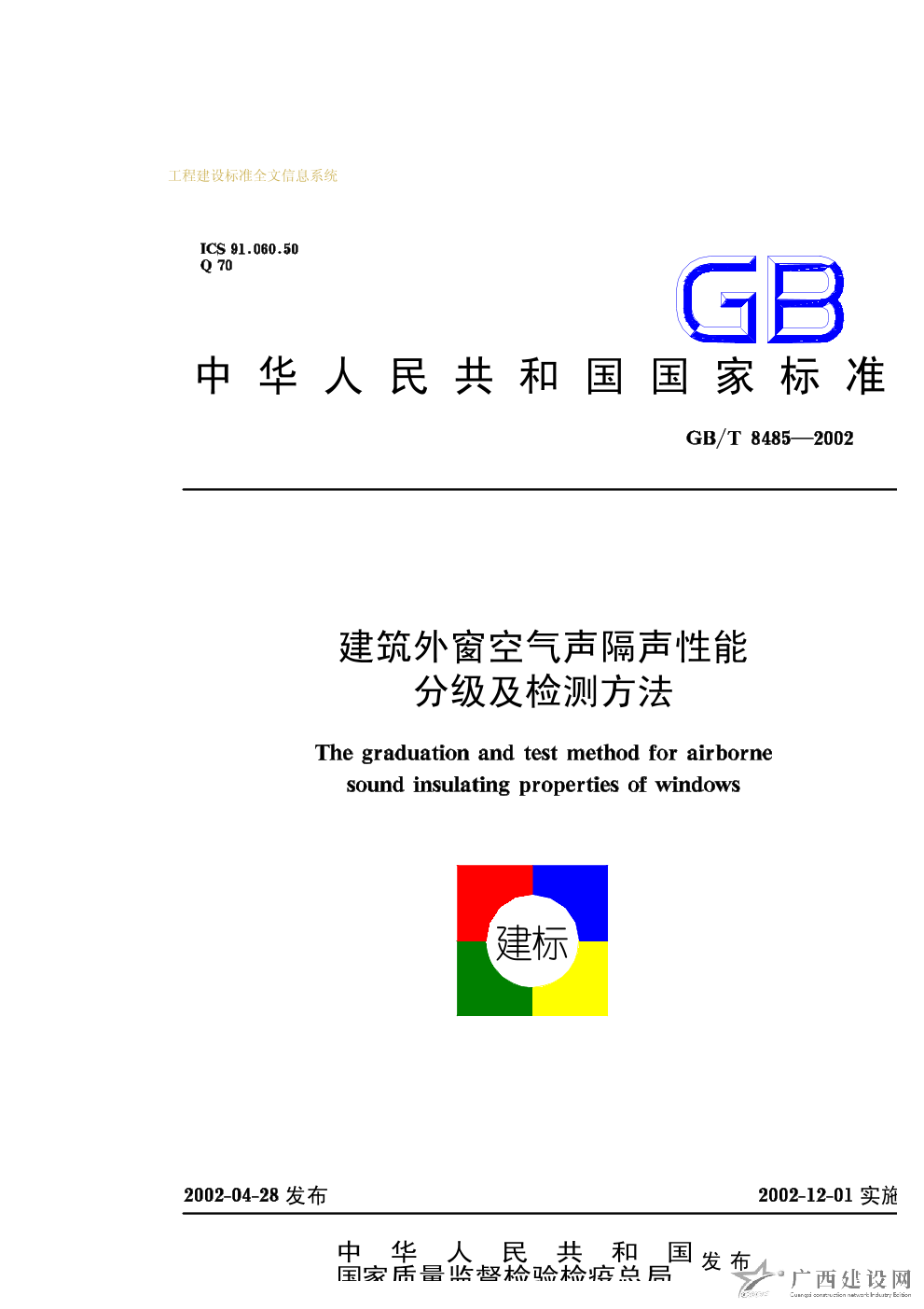 建筑外窗空氣聲隔聲性能分級(jí)及檢測(cè)方法 GB/T8485—2002