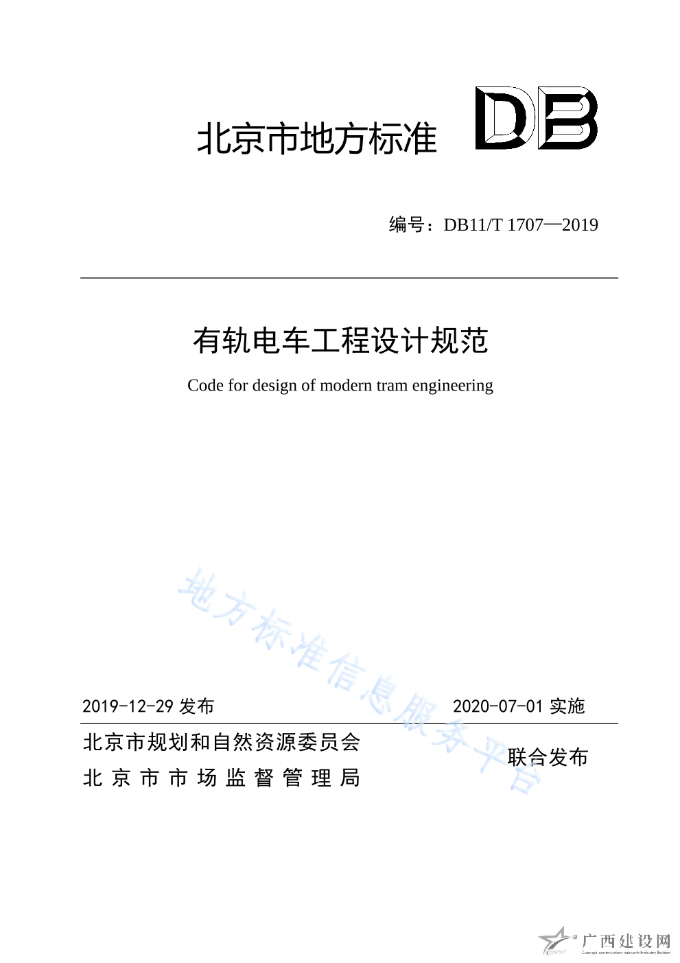 DB11 T+1707-2019有軌電車工程設(shè)計(jì)規(guī)范