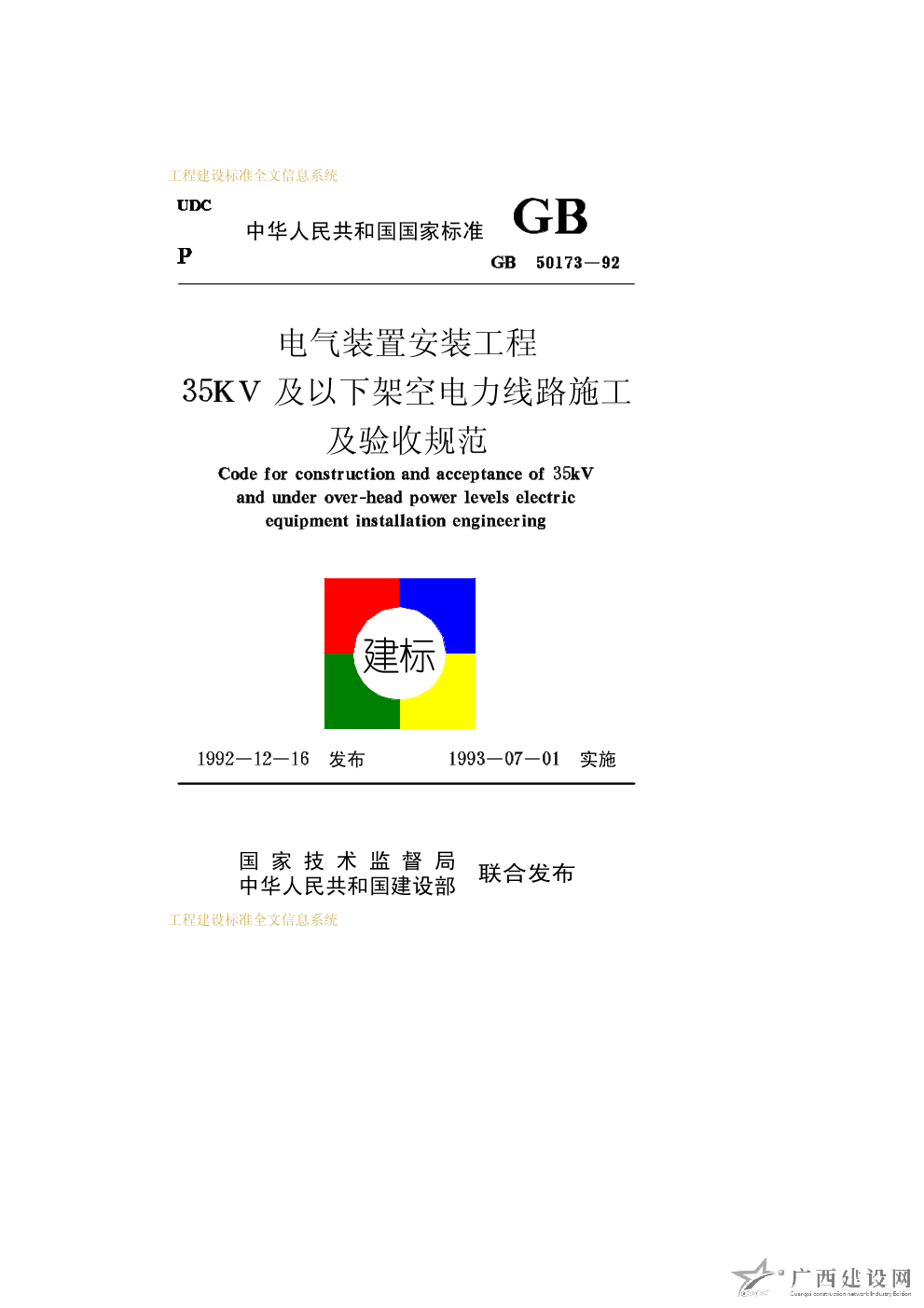 電氣裝置安裝工程35KV及以下架空電力線路施工及驗收規(guī)范 GB50173-92