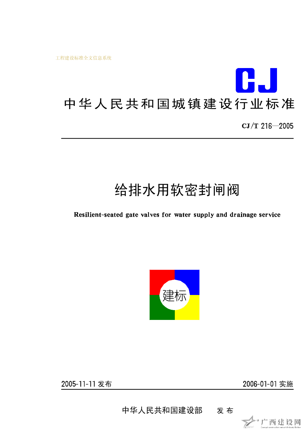 給排水用軟密封閘閥 CJ/T216-2005