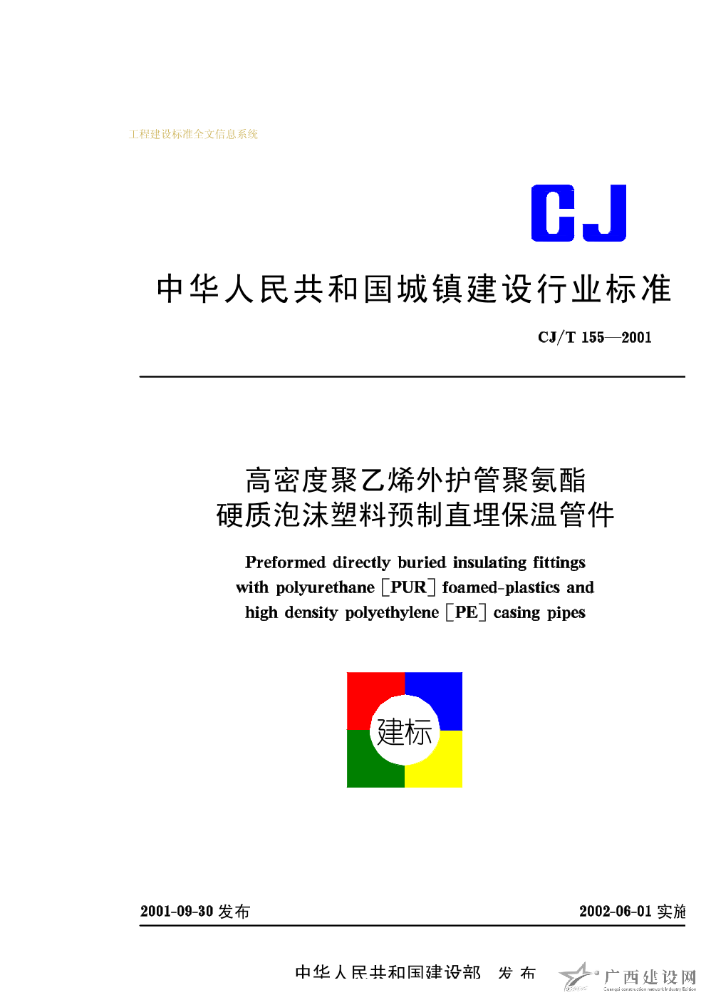 高密度聚乙烯外護(hù)管聚氨酯硬質(zhì)泡沫塑料預(yù)制直埋保溫管件 CJ/T155—2001