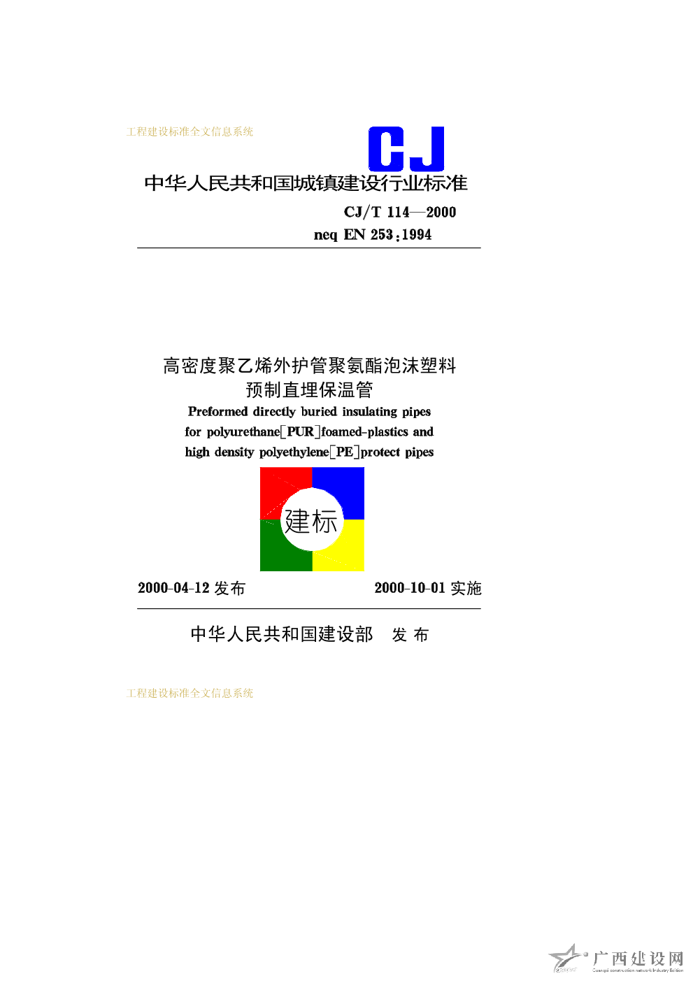 高密度聚乙烯外護(hù)管聚氨酯泡沫塑料預(yù)制直埋保溫管 CJ/T114—2000