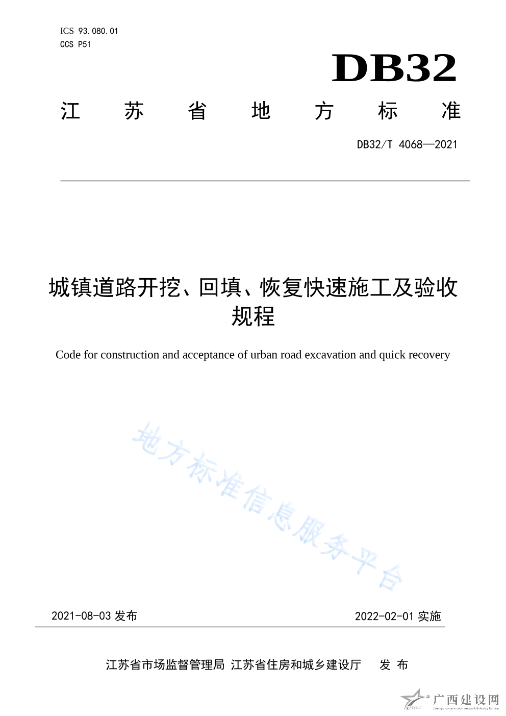 DB32 T4068-2021城鎮(zhèn)道路開挖、回填、恢復(fù)快速施工及驗收規(guī)程