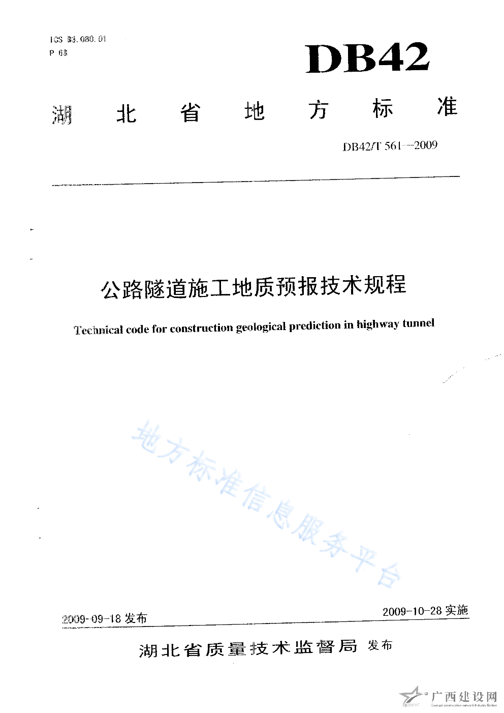 DB42 T911-2013地質災害防治工程施工技術規程