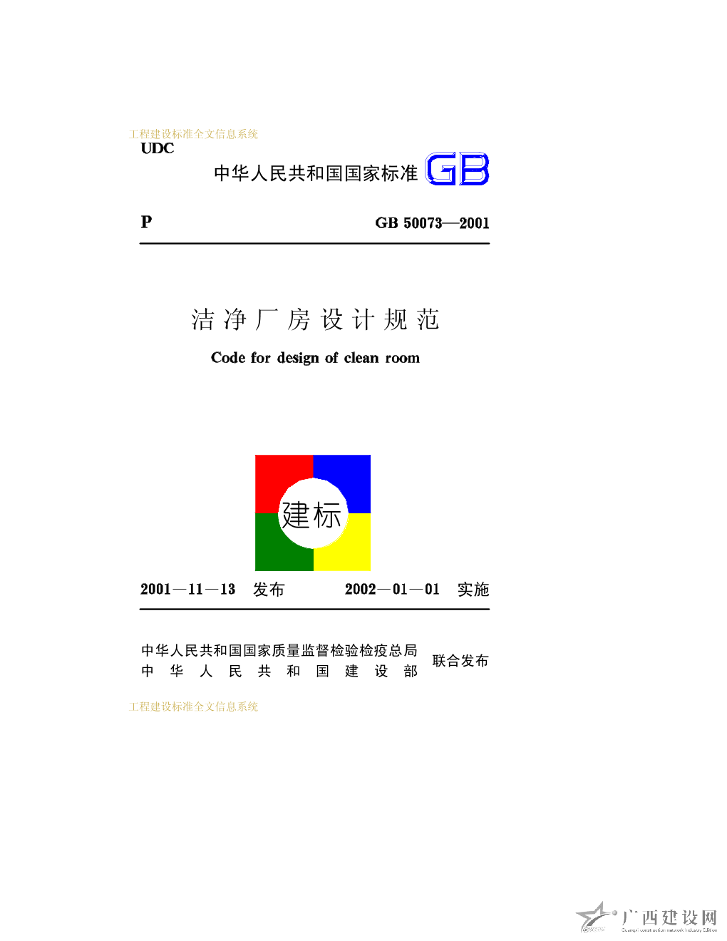 GB 50073-2013潔凈廠房設計規范