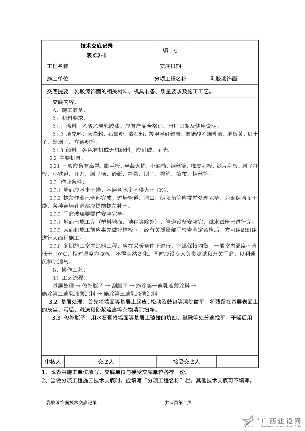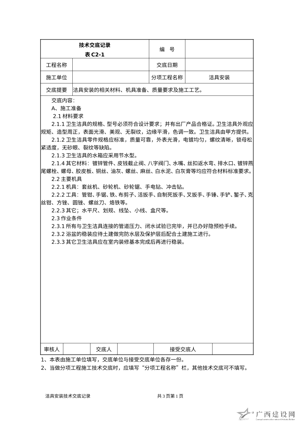 施工技術管理(安全技術交底單)表式