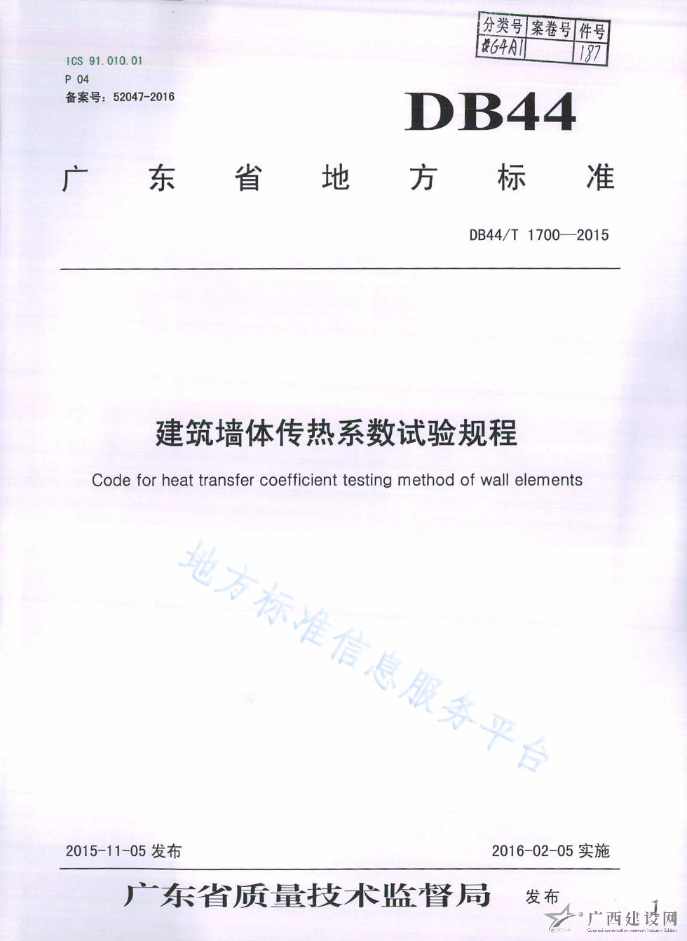 DB44 T 1700-2015建筑墻體傳熱系數(shù)試驗(yàn)規(guī)程