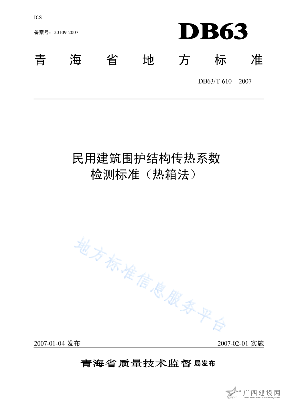 DB63 T610-2007民用建筑圍護(hù)結(jié)構(gòu)轉(zhuǎn)熱系數(shù)檢測標(biāo)準(zhǔn)