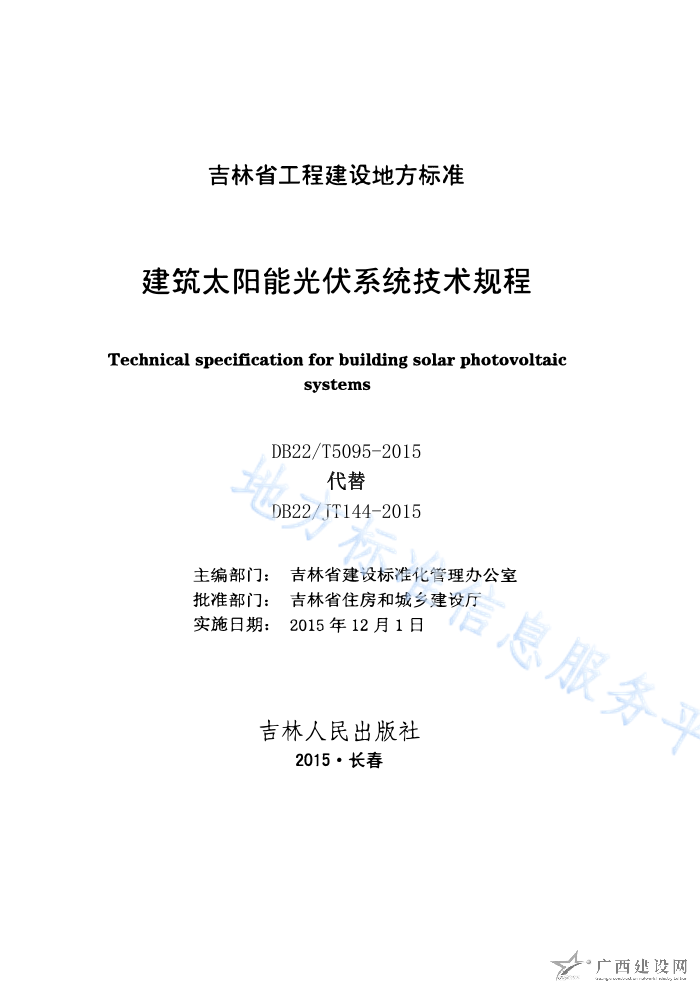 DB22T5095-2015建筑太陽能光伏系統(tǒng)技術規(guī)程