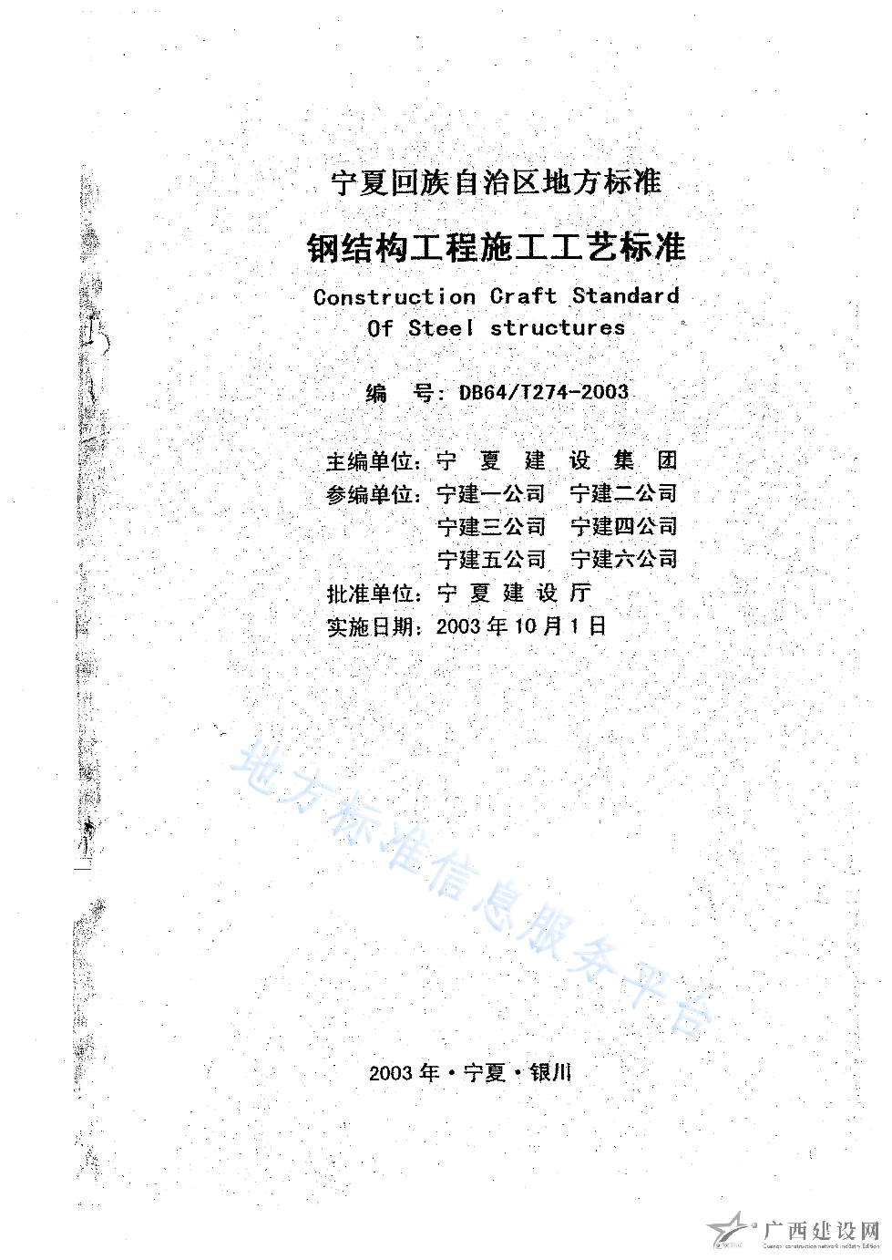 DB64 274-2003鋼結(jié)構(gòu)工程施工工藝標(biāo)準(zhǔn)