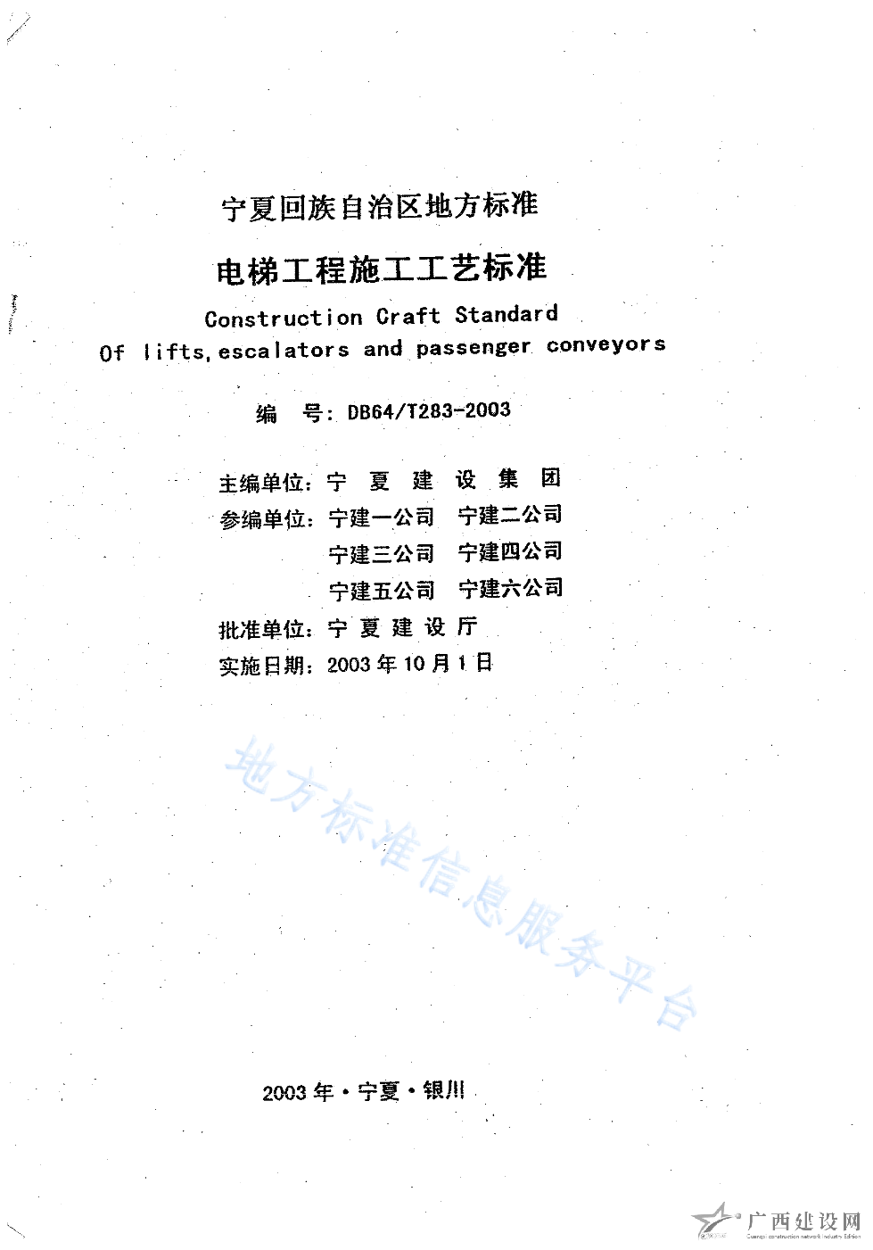 DB64 283-2003電梯工程施工工藝標(biāo)準(zhǔn)