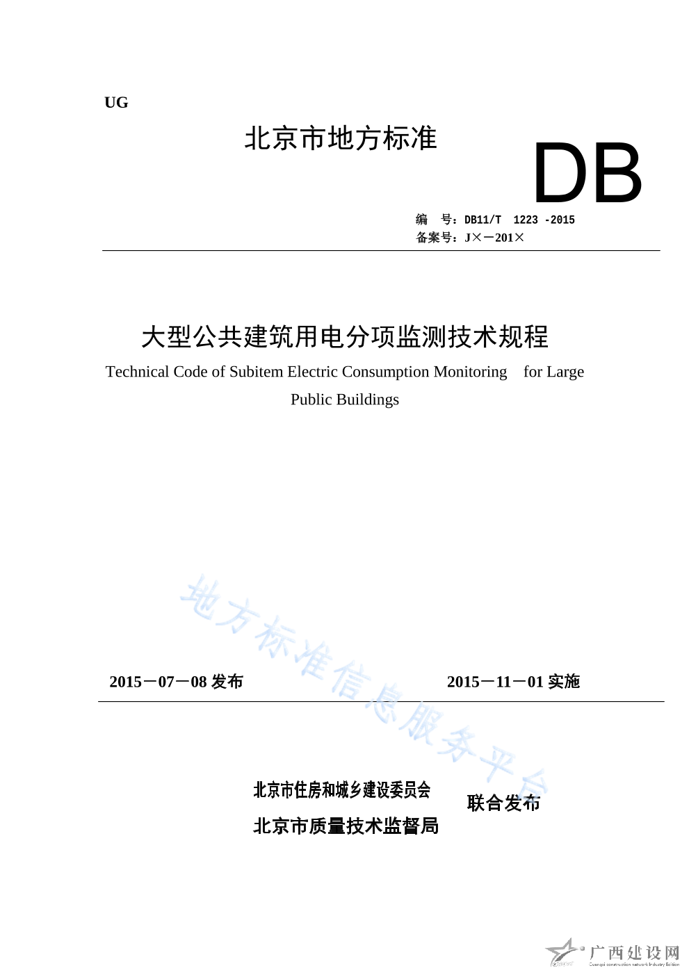 DB11 T_1223-2015大型公共建筑用電分項(xiàng)監(jiān)測技術(shù)規(guī)程