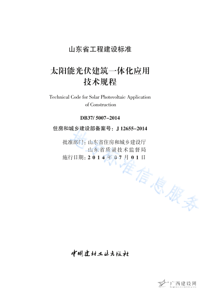 DB37 5007-2014太陽能光伏建筑一體化應用技術規程