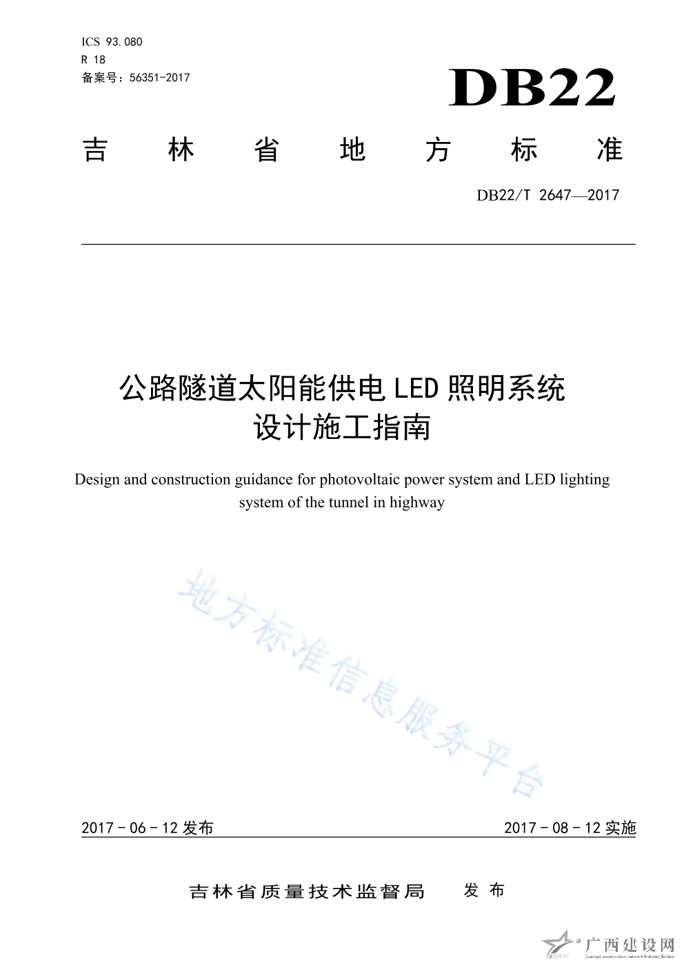 DB22 T2647-2017公路隧道太陽能供電LED照明系統設計施工指南