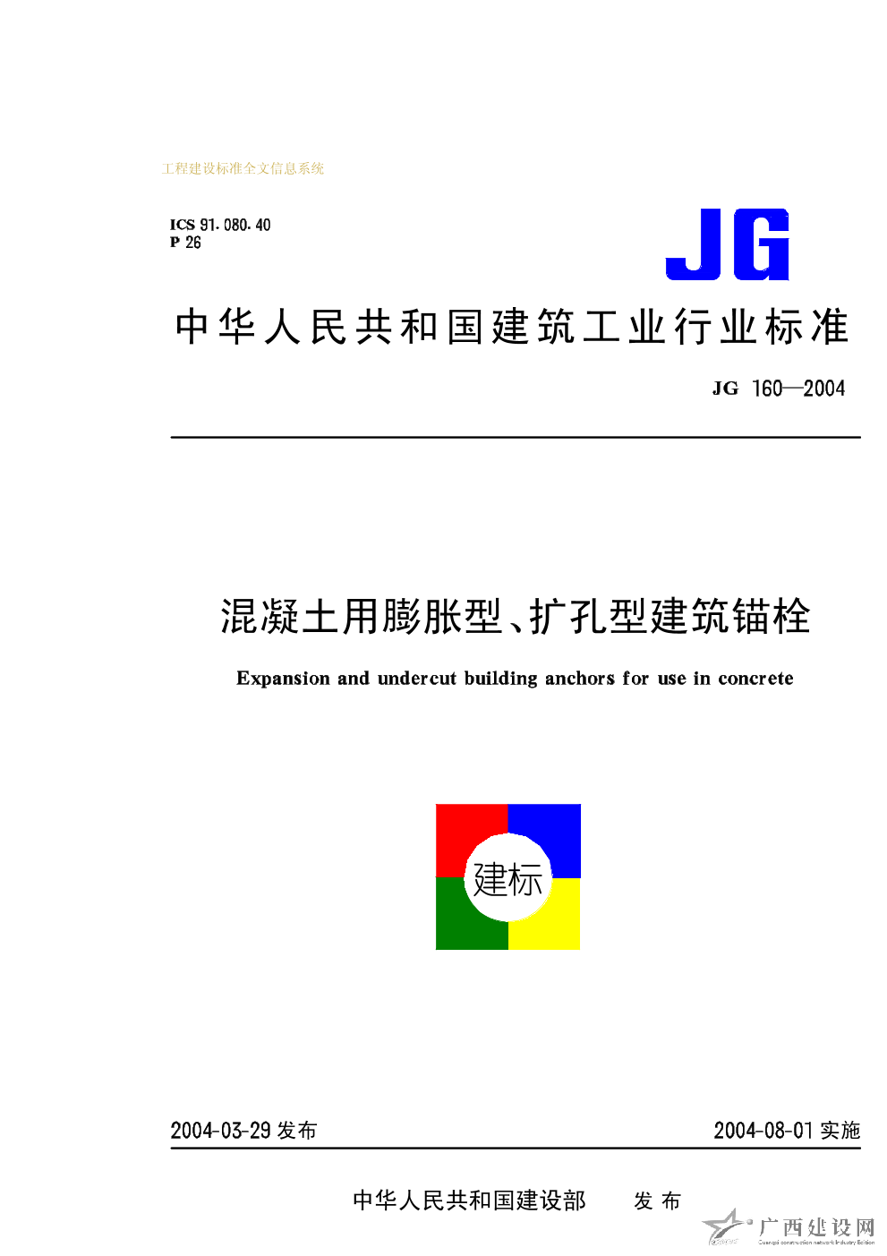 混凝土用膨脹型、擴孔型建筑錨栓 JG160-2004