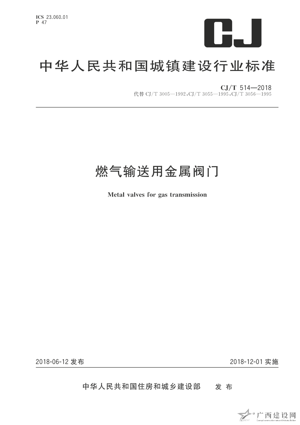 CJ-T 514-2018:燃?xì)廨斔陀媒饘匍y門