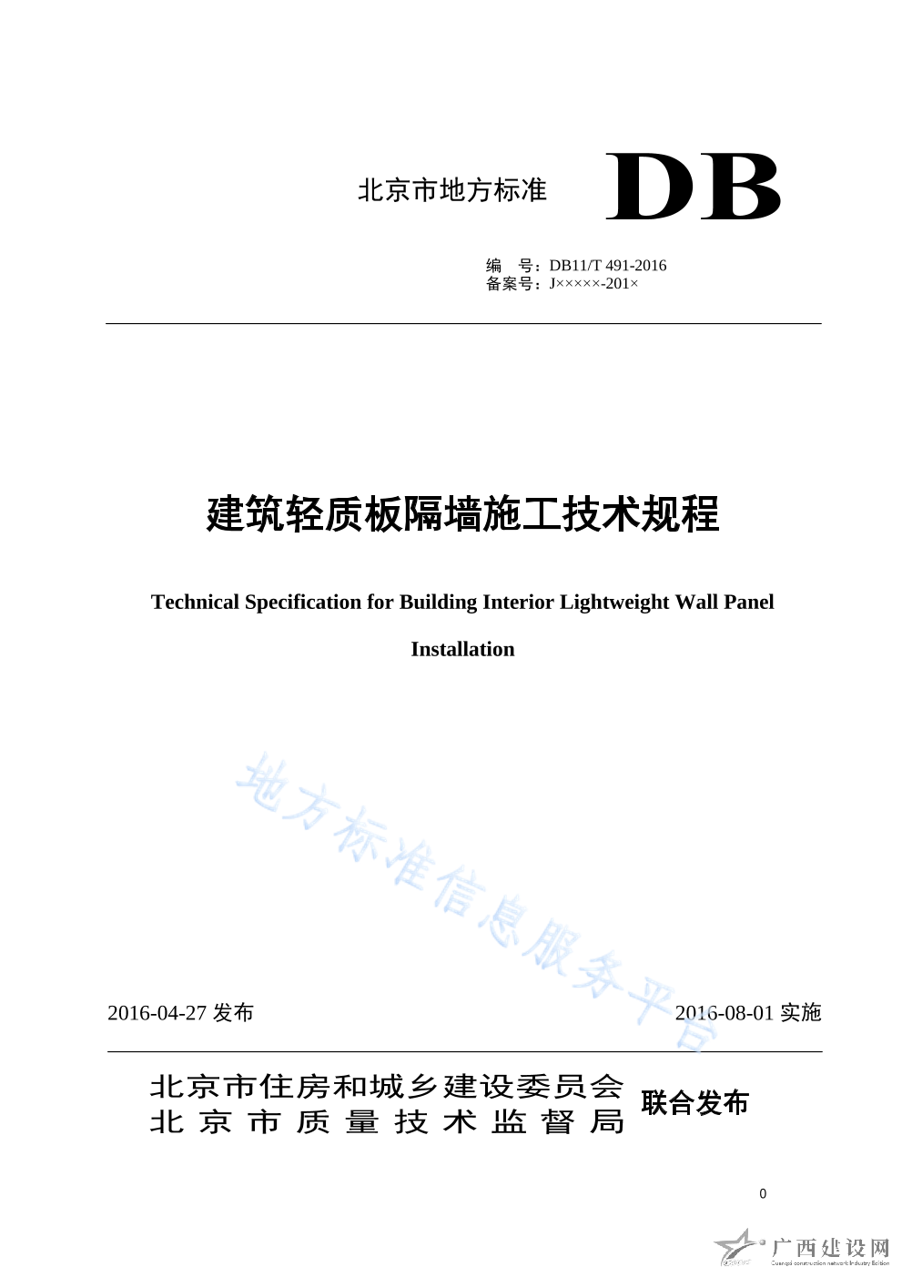 DB11 T_491-2016建筑輕質板隔墻施工技術規程
