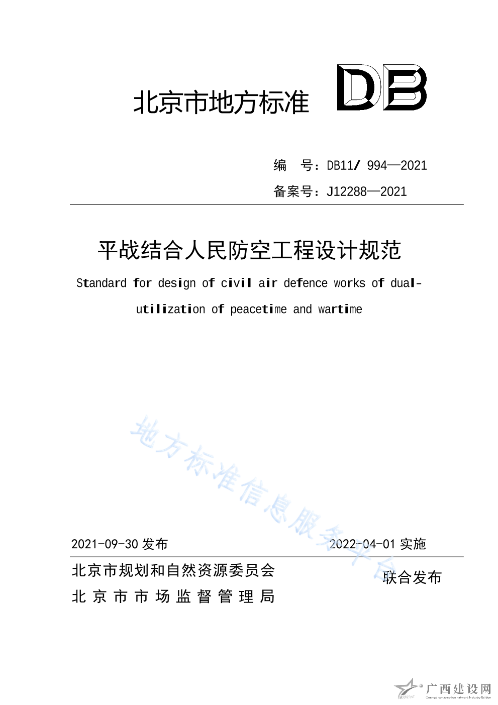 DB11 1741-2020城市基礎設施工程人民防空防護設計標準