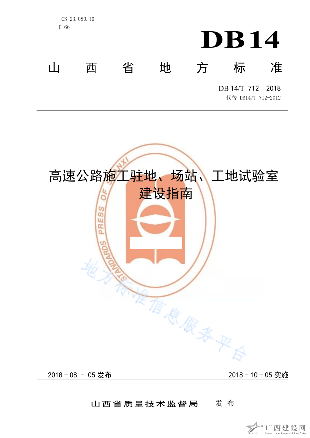 DB14 T712-2018高速公路施工駐地、場(chǎng)站、工地試驗(yàn)室建設(shè)指南