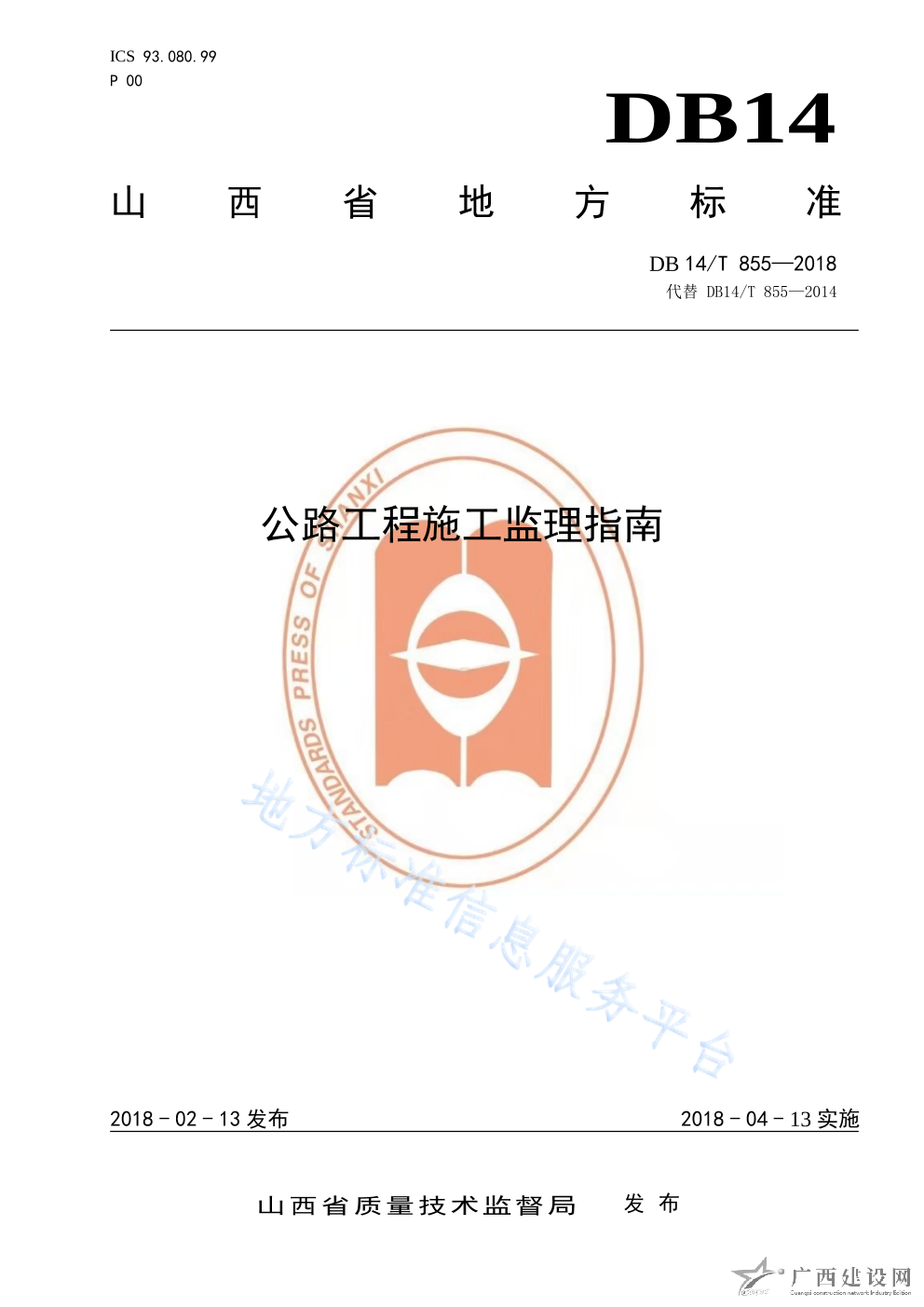 DB14 T855-2018公路工程施工監(jiān)理指南