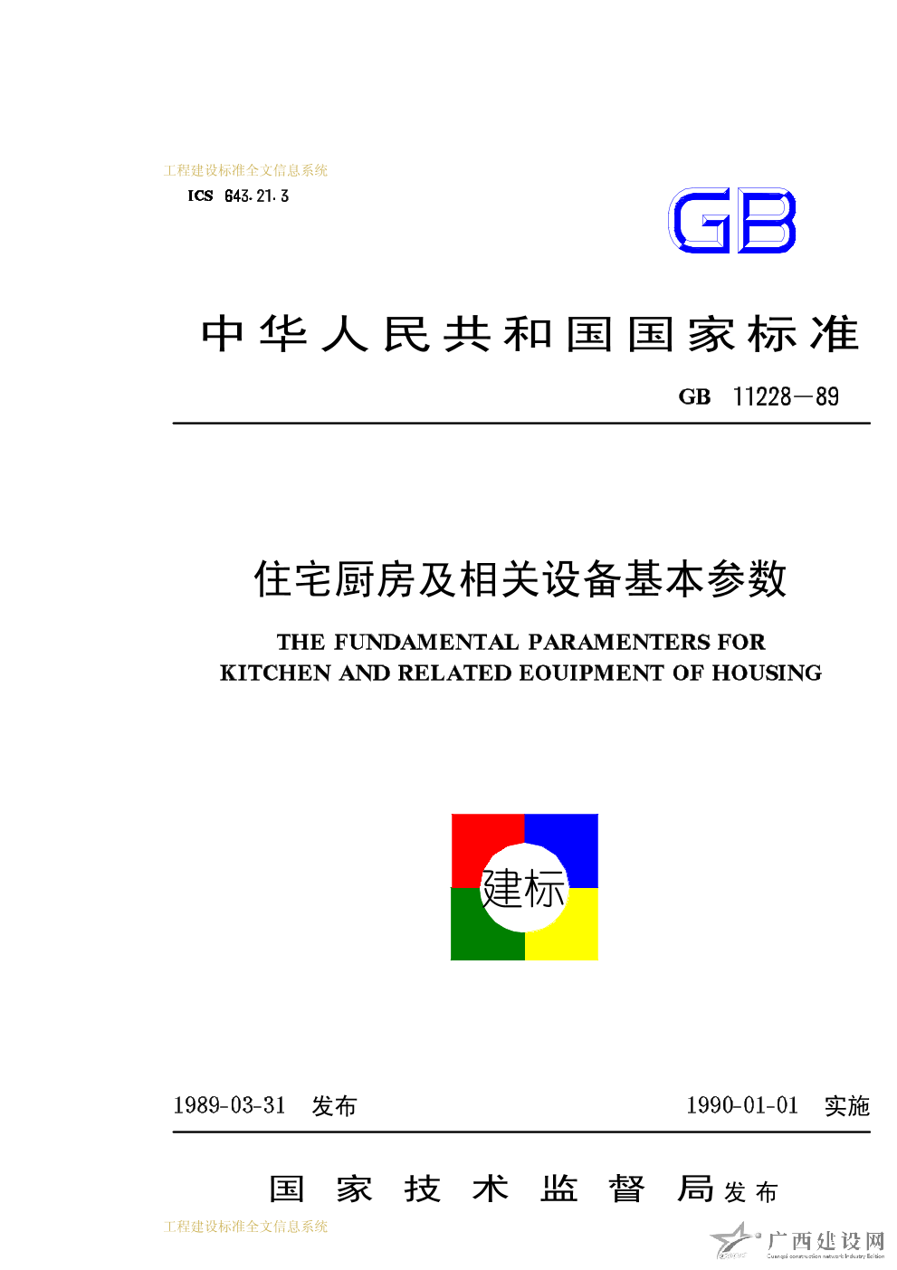 住宅廚房及相關(guān)設(shè)備基本參數(shù) GB11228-89
