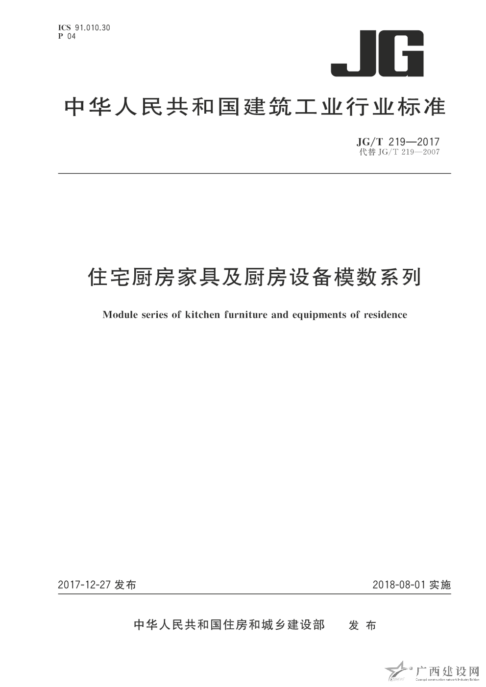 JGT 219-2017 住宅廚房家具及廚房設(shè)備模數(shù)系列