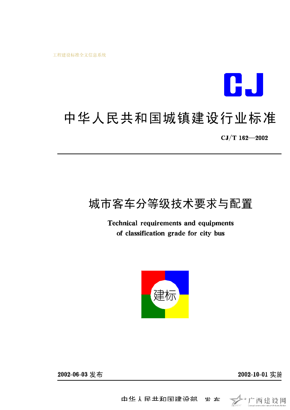 城市客車(chē)分等級(jí)技術(shù)要求與配置 CJ/T162—2002