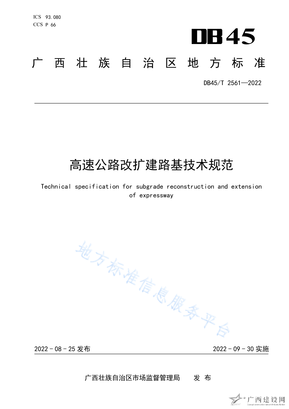 DB45T+2561-2022+高速公路改擴(kuò)建路基技術(shù)規(guī)范
