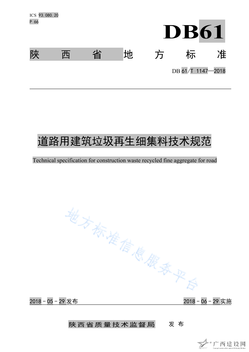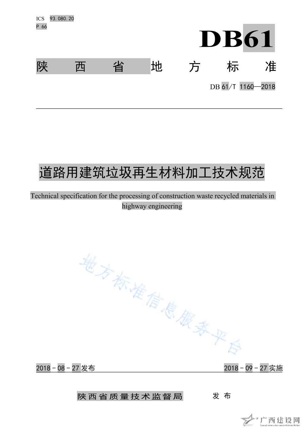 DB61 T1150-2018水泥穩定建筑垃圾再生集料基層施工技術規范