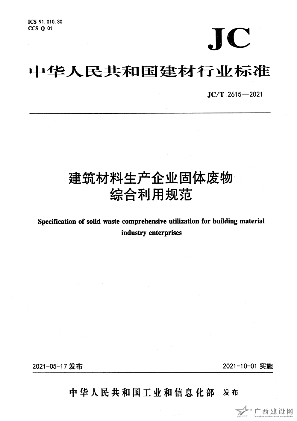 JC T2615-2021 建筑材料生產(chǎn)企業(yè)固體廢物綜合利用規(guī)范