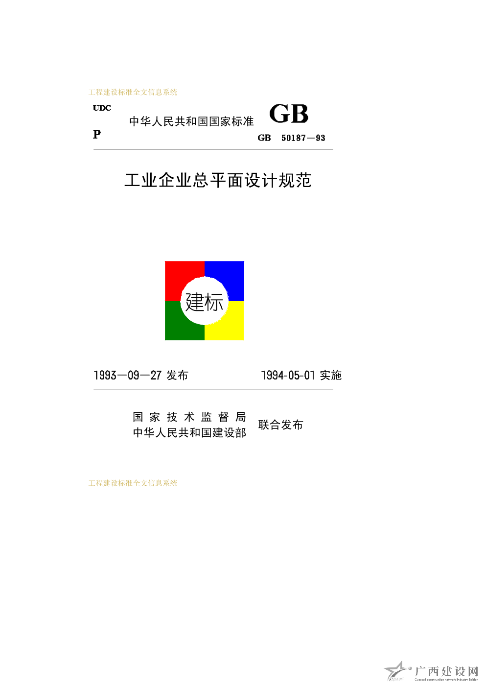工業企業總平面設計規范 GB50187-93