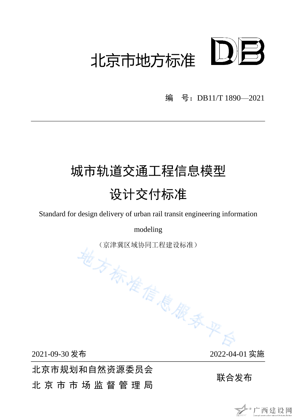 DB11 T+1890-2021城市軌道交通工程信息模型設(shè)計交付標(biāo)準(zhǔn)