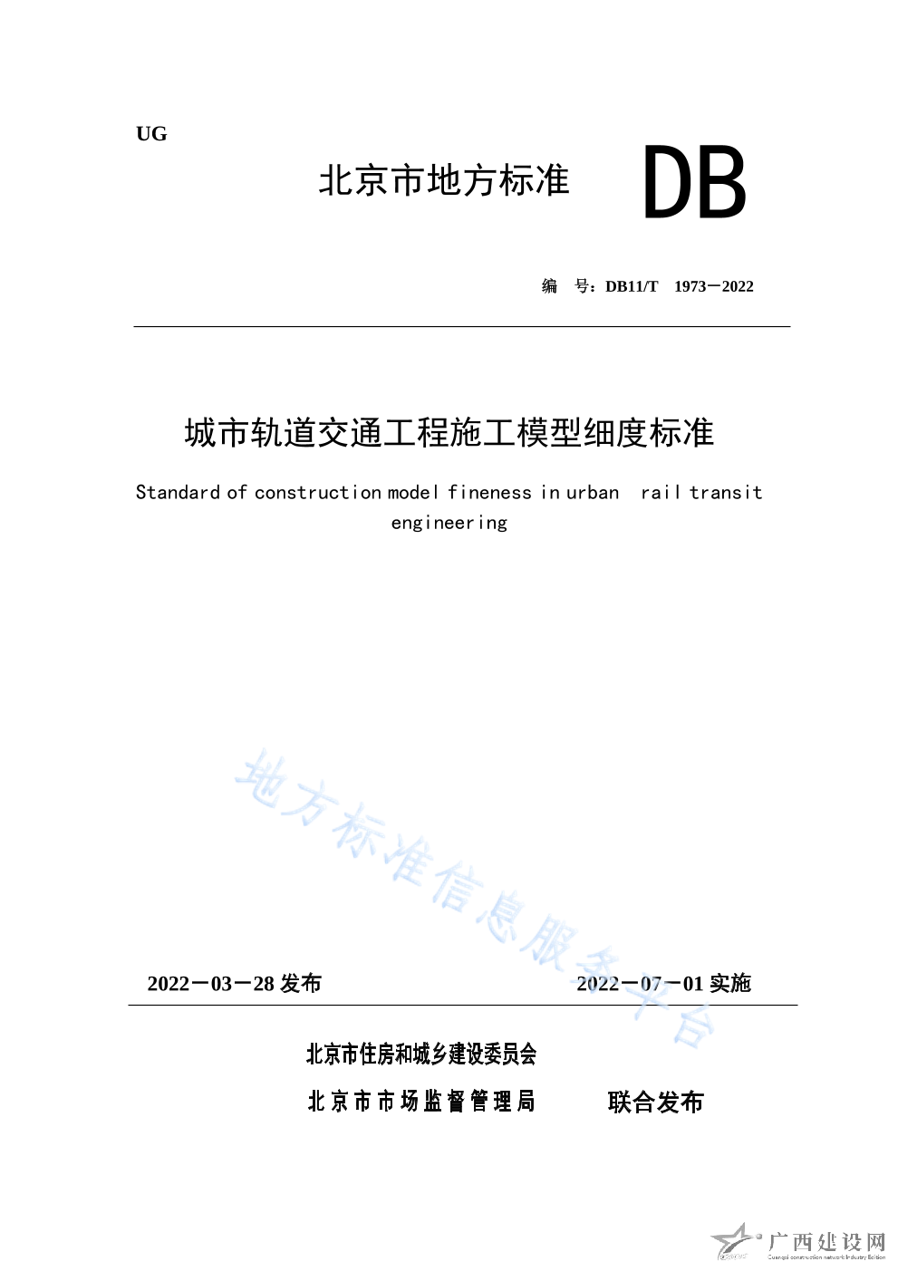 DB11 T+1973-2022城市軌道交通工程施工模型細(xì)度標(biāo)準(zhǔn)