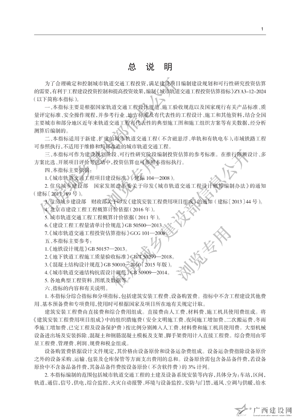 《城市軌道交通工程投資估算指標(biāo)》