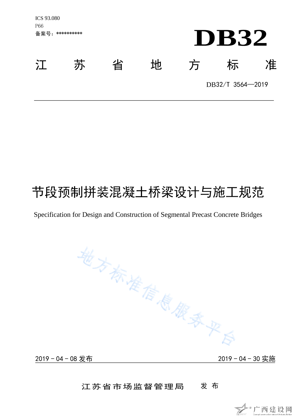 DB32 T3564-2019節段預制拼裝混凝土 橋梁設計與施工規范