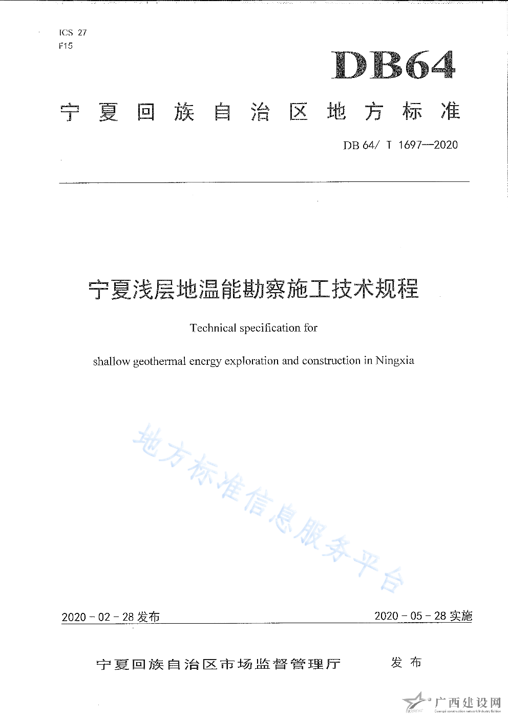 DB64 1698-2020寧夏地熱井施工技術規(guī)程