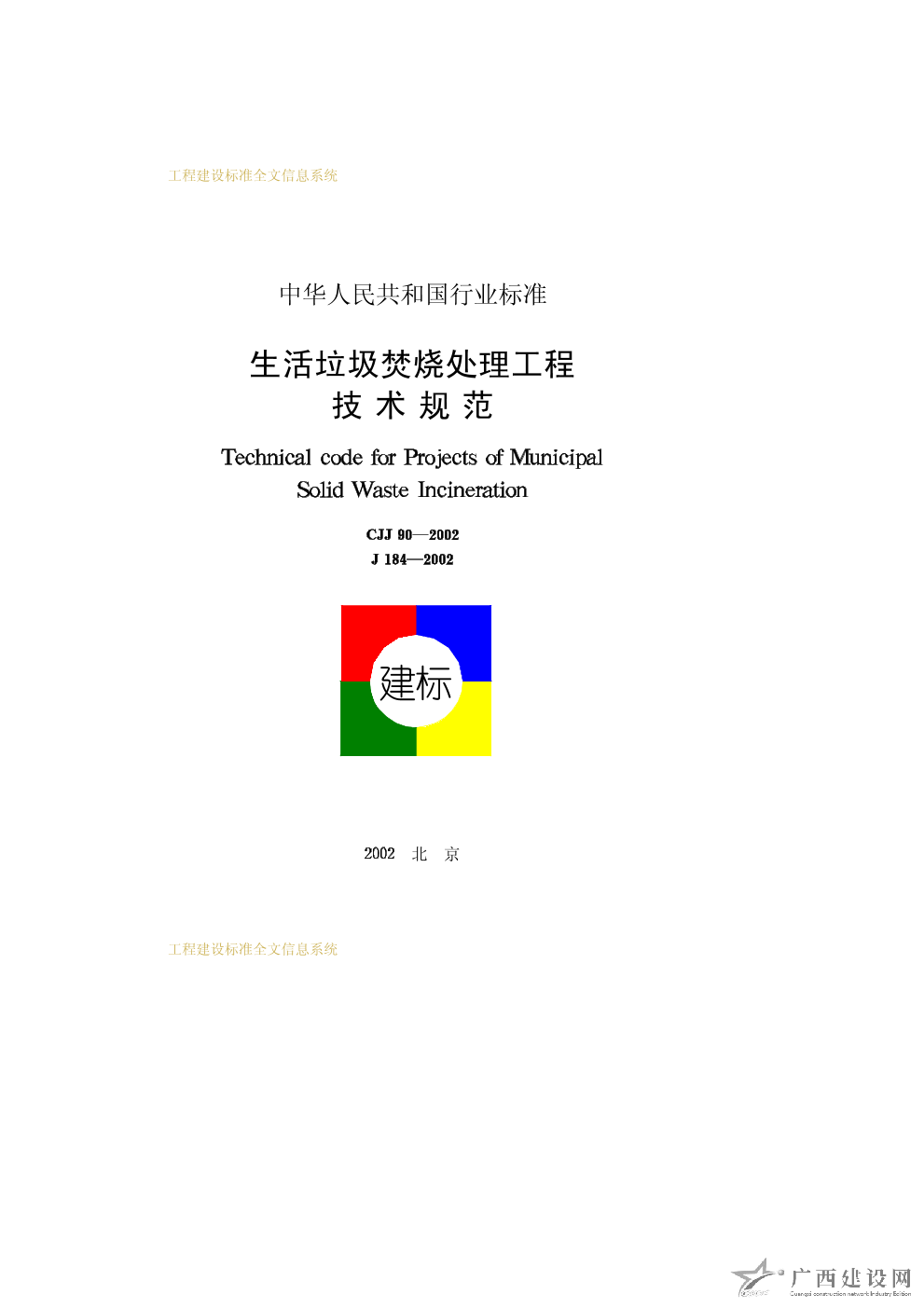 生活垃圾焚燒處理工程技術規(guī)范 CJJ90—2002