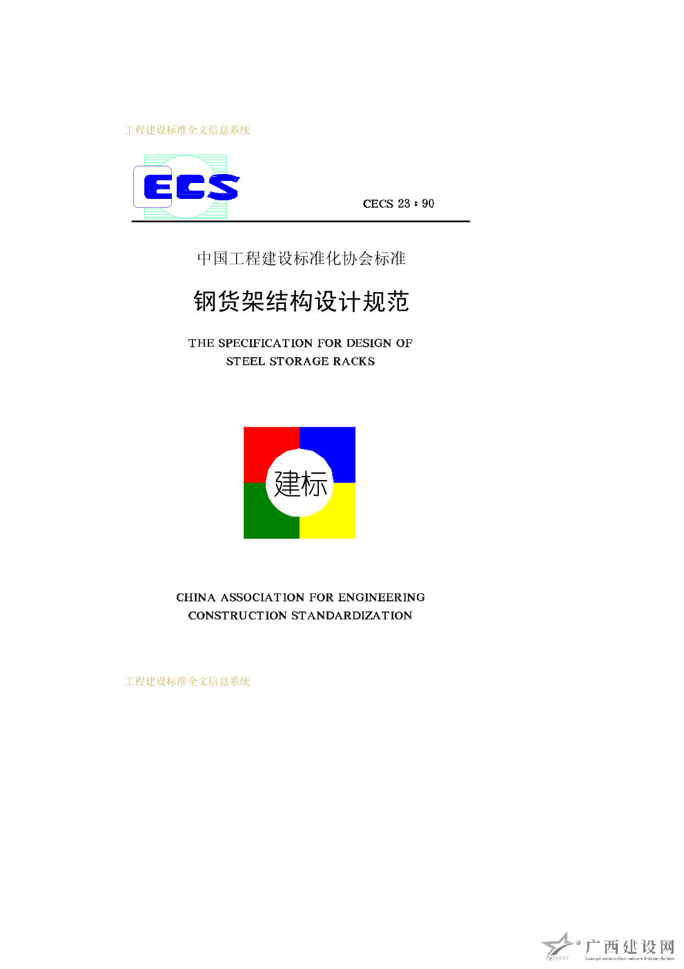 鋼貨架結(jié)構(gòu)設(shè)計規(guī)范 CECS23∶90