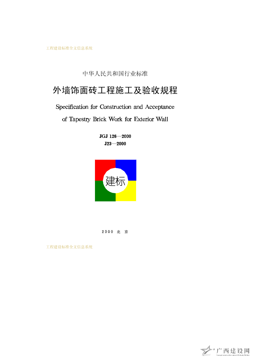 外墻飾面磚工程施工及驗(yàn)收規(guī)程 JGJ126—2000