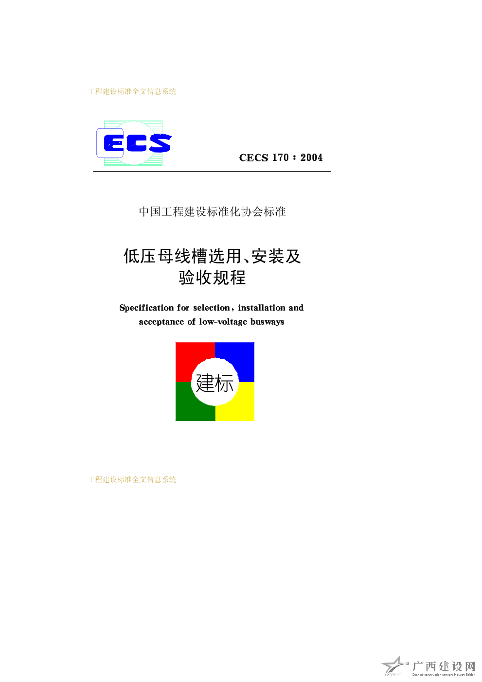 低壓母線槽選用、安裝及驗(yàn)收規(guī)程 CECS170∶2004