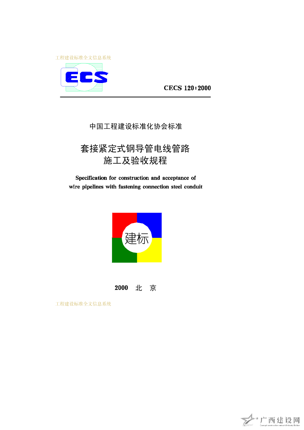 套接緊定式鋼導(dǎo)管電線管路施工及驗(yàn)收規(guī)程 CECS120∶2000