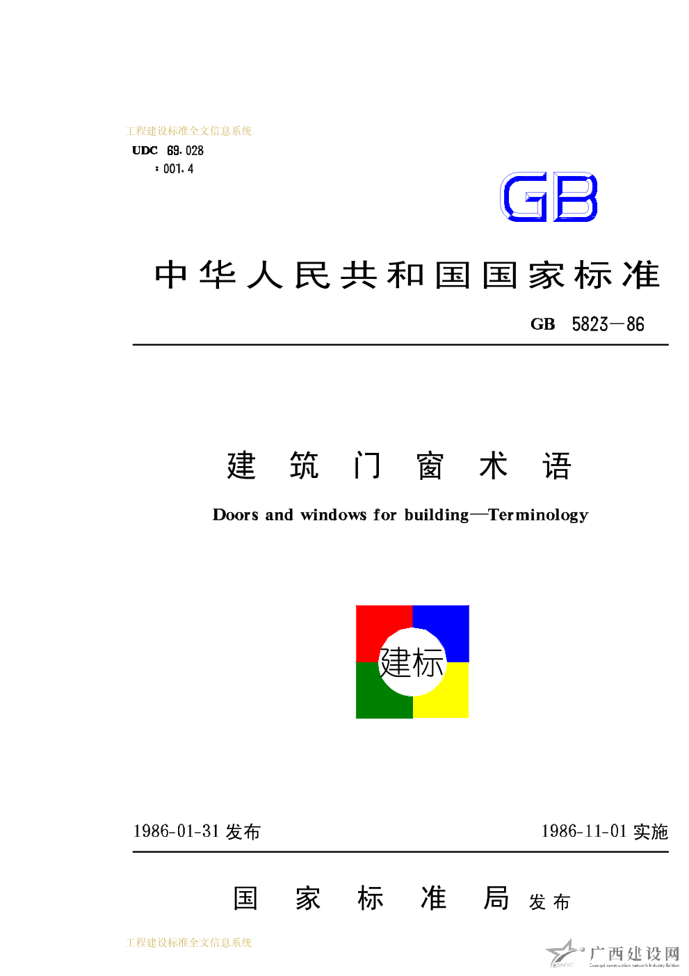 建筑門(mén)窗術(shù)語(yǔ) GB5823-86