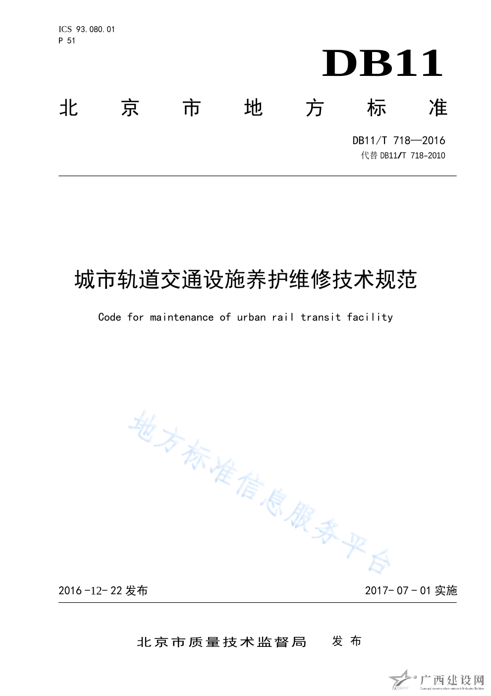 DB11 T_718-2016城市軌道交通設(shè)施養(yǎng)護(hù)維修技術(shù)規(guī)范