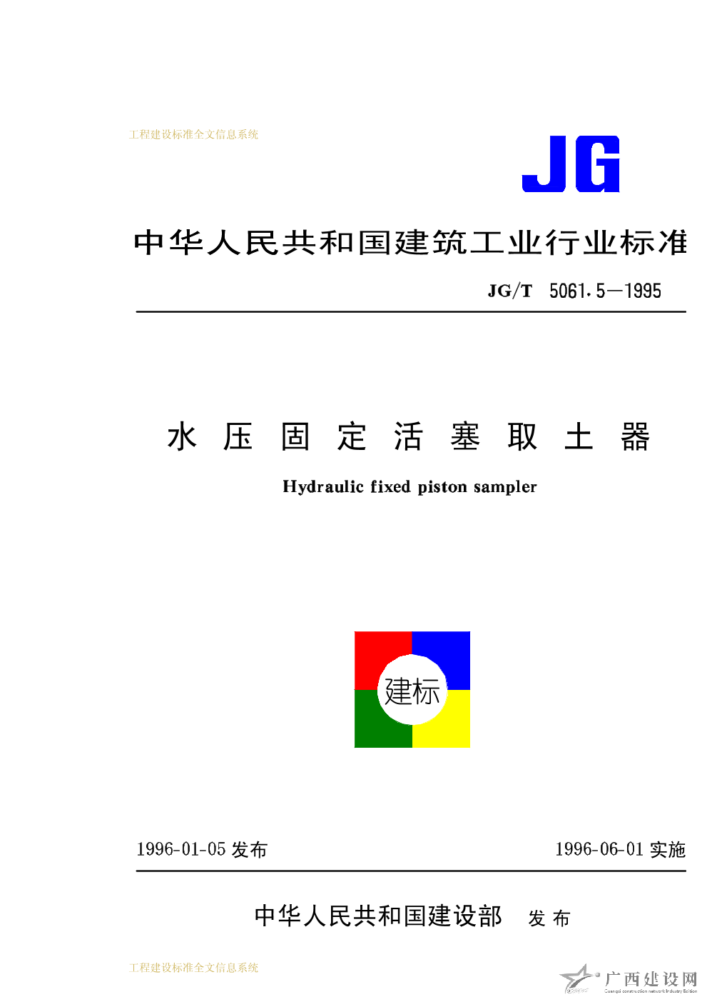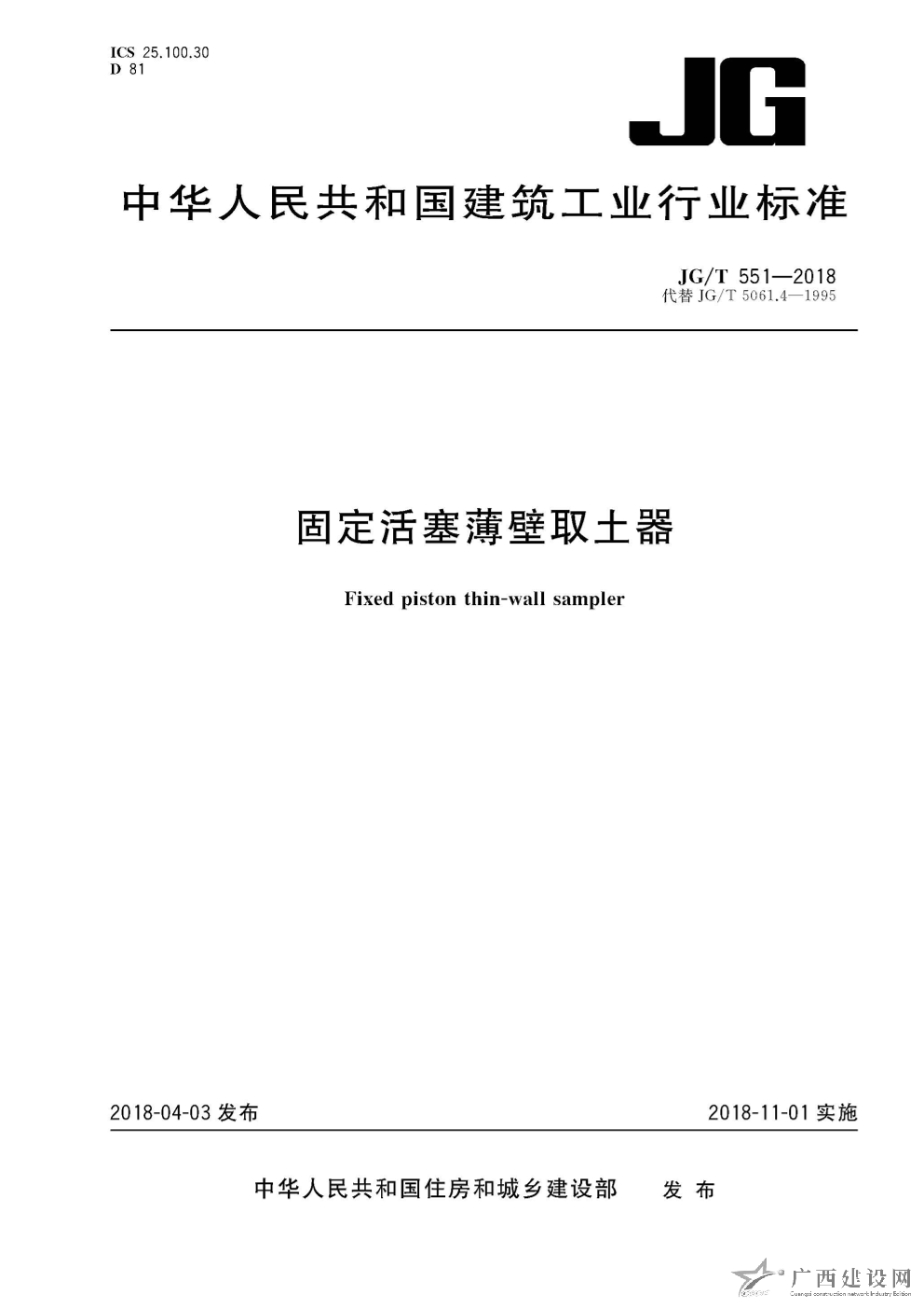 固定活塞薄壁取土器 JG/T5061.4-1995