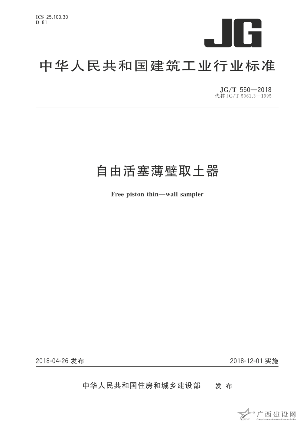 自由活塞薄壁取土器 JG/T5061.3-1995