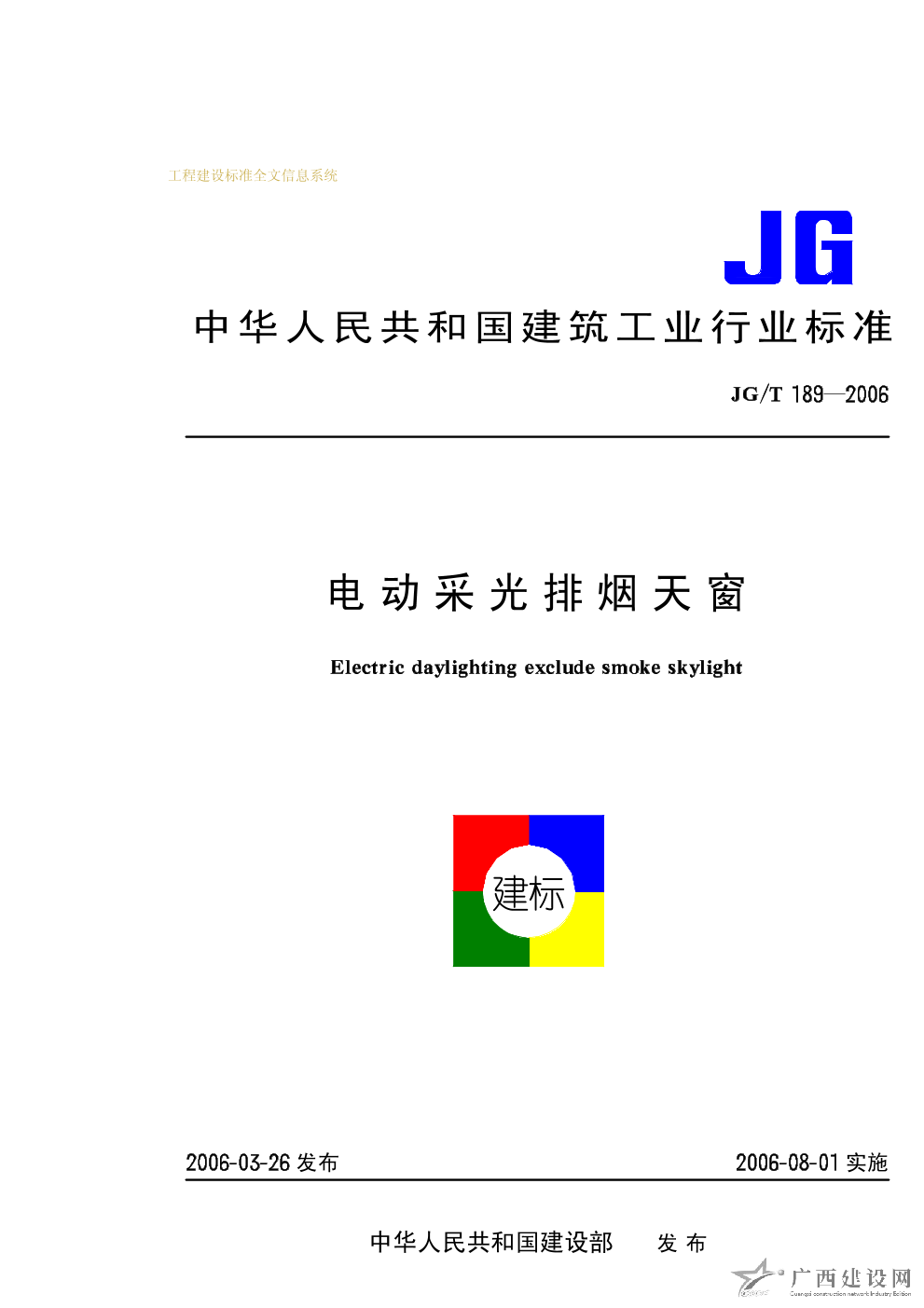 電動采光排煙天窗 JG/T189-2006