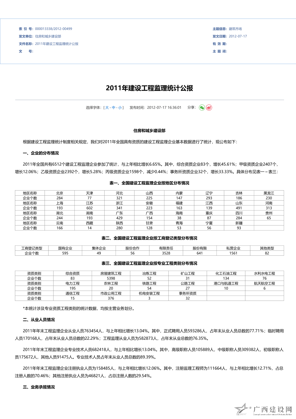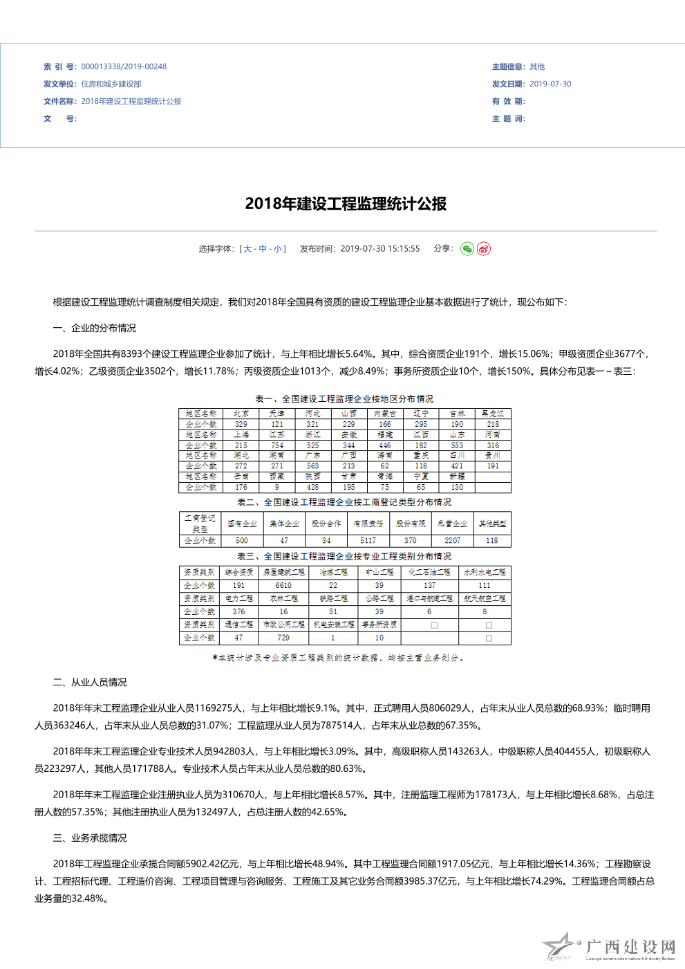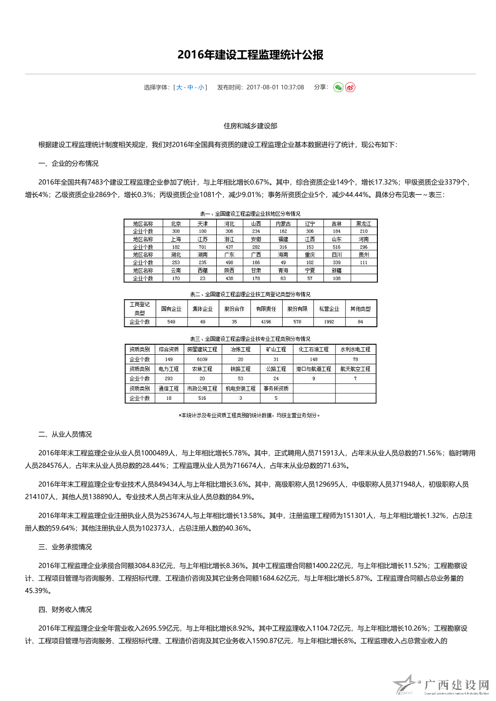 2017年全國建設工程監理統計公報